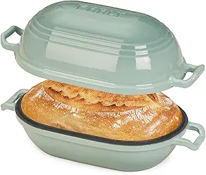 Enameled Cast Iron Dutch Oven for Sourdough Bread Baking,9 x 5-4/5 Inch Oval Cast Iron Bread Pan with Lid,Dutch Oven for Homemade Sourdough Baking,2.8QT Meatloaf Pan,Oven Safe