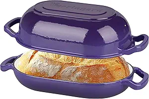 Enameled Cast Iron Sourdough Bread Oven, Dutch Oven, Loaf Cast Iron Bread Pan for Homemade Bread Baking, Meatloaf Pan with Lid, 5QT, Purple